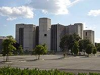 The increased production of the expanded shipbuilding industry during World War II spurred Houston's growth,[42] as did the establishment in 1961 of NASA's "Manned Spacecraft Center" (renamed the Lyndon B. Johnson Space Center in 1973). This was the stimulus for the development of the city's aerospace industry. The Astrodome, nicknamed the "Eighth Wonder of the World",[43] opened in 1965 as the world's first indoor domed sports stadium.