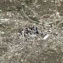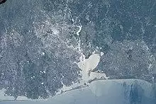Houston has excessive ozone levels and is routinely ranked among the most ozone-polluted cities in the United States.[116] Ground-level ozone, or smog, is Houston's predominant air pollution problem, with the American Lung Association rating the metropolitan area's ozone level twelfth on the "Most Polluted Cities by Ozone" in 2017, after major cities such as Los Angeles, Phoenix, New York City, and Denver.[117] The industries located along the ship channel are a major cause of the city's air pollution.[118] The rankings are in terms of peak-based standards, focusing strictly on the worst days of the year; the average ozone levels in Houston are lower than what is seen in most other areas of the country, as dominant winds ensure clean, marine air from the Gulf.[119] Excessive man-made emissions in the Houston area led to a persistent increase of atmospheric carbon dioxide over the city. Such an increase, often regarded as "CO2 urban dome," is driven by a combination of strong emissions and stagnant atmospheric conditions. Moreover, Houston is the only metropolitan area with less than ten million citizens where such CO2 dome can be detected by satellites.[120]