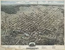 By 1860, Houston had emerged as a commercial and railroad hub for the export of cotton.[27] Railroad spurs from the Texas inland converged in Houston, where they met rail lines to the ports of Galveston and Beaumont. During the American Civil War, Houston served as a headquarters for General John Magruder, who used the city as an organization point for the Battle of Galveston.[30] After the Civil War, Houston businessmen initiated efforts to widen the city's extensive system of bayous so the city could accept more commerce between Downtown and the nearby port of Galveston. By 1890, Houston was the railroad center of Texas.