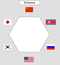The six-party talks aimed to find a peaceful resolution to the security concerns as a result of the North Korean nuclear weapons program. There was a series of meetings with six participating states in Beijing:[1]