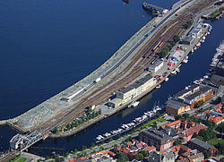 The bridge was opened on March 22, 1918, allowing trains on the Dovre Line access to Trondheim Central Station while also being able to open to allow ships on the Trondheim Canal (Vestre kanalhavn) access to the Trondheimsfjord. It was built at the same time the Dovre Line was rebuilt from narrow gauge 1,067 mm (3 ft 6 in) to 1,435 mm (4 ft 8 1&fras1;2 in) standard gauge and the stretch between Marienborg and Trondheim Central Station was double tracked.[2]