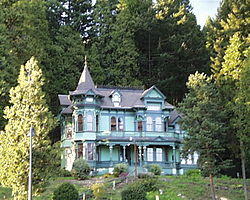 The butte is also the site of the Shelton-McMurphey-Johnson House, a Queen Anne Victorian residence built-in 1880 by a family that once owned the entire butte. Before trees grew up and obscured it, the house was known as the "Castle on the Hill". It was added to the National Register of Historic Places in 1984.[11] The name "Ya-Po-Ah" lives on in "Ya-Po-Ah Terrace", a controversial high-rise retirement home built at the foot of the butte in 1968.[12]
