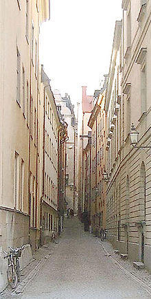 Skottgränd (Swedish: "Scotch Alley") is an alley in Gamla stan, the old town of Stockholm Sweden, stretching from Skeppsbron to Österlånggatan.