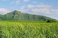 Sleeping Giant, also known as Nounou Mountain,[1] is a mountain ridge located west of the towns Wailua and Kapaʻa in the Nounou Forest Reserve on the Hawaiian island of Kauaʻi. The formation received its common English name both from its resemblance to a reclining human figure, and from a Native Hawaiian legend about a giant who, after great labor or overeating, lay to rest and is yet to awaken. Today Sleeping Giant is a major landmark for tourists visiting Kauai. Hiking trails lead to the highest point of the ridge, or what resembles a forehead. It is located at 22°3′39″N 159°21′19″W / 22.06083°N 159.35528°W.[2]