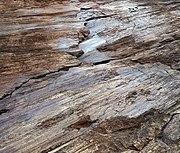 Slickensides on a fault plane in Corona Heights Park, San Francisco