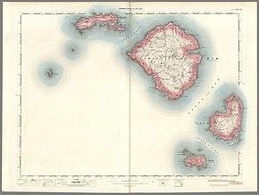 Smaller islands surrounding the main four include: