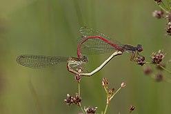 The small red damselfly (Ceriagrion tenellum) is a small damselfly flying in heathland bogs and streams. It is in the family Coenagrionidae.