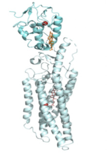 Smoothened (Smo) is a key transmembrane protein that is a key component of the hedgehog signaling pathway, a cell-cell communication system critical for embryonic development and adult tissue homeostasis.[9][10] Mutations in proteins that relay Hh signals between cells cause birth defects and cancer.[11] The protein that carries the Hh signal across the membrane is the oncoprotein and G-protein coupled receptor (GPCR) Smoothened (Smo). Smo is regulated by a separate transmembrane receptor for Hh ligands called Patched (Ptc). Ptc itself is a tumor suppressor that keeps the Hh pathway off by inhibiting Smo. The excessive Hh signaling that drives human skin and brain cancer is most frequently caused by inactivating mutations in Ptc or by gain of function mutations in Smo. While direct Smo agonists and antagonists, such as SAG and vismodegib, can bind to and activate or inhibit Smo, how Ptc inhibits Smo endogenously remains a mystery in the field.