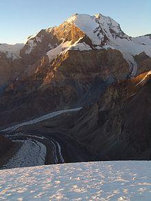 Khan Tengri's geologic elevation is 6,995 metres (22,949 ft) but its glacial cap rises to 7,010 metres (23,000 ft). For this reason, it is considered a 7000m peak.