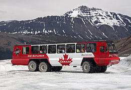 Snowcoaches are a popular mode of transportation for tourists in areas such as Yellowstone Park in the United States and the Columbia Icefield situated in Jasper National Park, Canada.