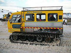 A snow coach is a specialized passenger transport vehicle designed to operate over snow or ice, similar to a large, multi-passenger snowcat that is equipped with bus-style seating. These vehicles may have multiple sets of very large, low-pressure tires, or they may have tracks. Snow coaches may seat ten or more passengers and are often used for sightseeing tours or for over-snow transportation.