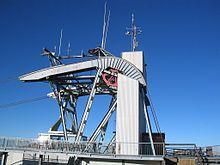 One of two cable cars composing the Aerial Tram at Snowbird Ski and Summer Resort approaches the top station on top of Hidden Peak at an elevation of 11,000 feet | |