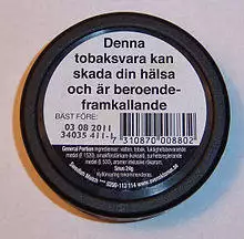Snus manufacturer Swedish Match filed a modified risk tobacco product (MRTP) application with the U.S. Food and Drug Administration (FDA) Center for Tobacco Products to modify the warning label requirements by:[30]