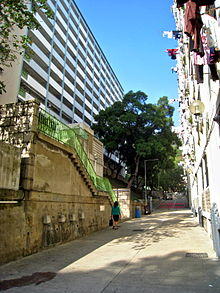 The estate was built on the site of squatter areas which were demolished for the construction of the estate of 16 blocks from 1955–1963.[1] The blocks were called "Houses" and named after varieties of flowers. The architectural design of the estate was unique in Hong Kong. There were 5,316 flats in the original estate, with areas ranging from 19.5 to 49.1m2, with capacity of 15,200.[2]
