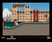 Soccer Kid is a platform game where players take control of the titular character travelling across the world in order to retrieve and restore the world cup from the clutches of the alien pirate Scab, who plans to add it to his ever-growing collection. By pressing different buttons at the title screen, the player can change the colours of their character's clothes in order to represent their favorite team. Each country has three levels that the player must navigate through.