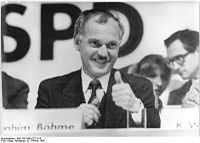 Ibrahim Böhme was slated to have been a senior minister in the government. However, during the coalition talks he had been unmasked as a longtime Stasi informer by the West German news magazine Der Spiegel. Though Böhme failed to acknowledge this, he agreed to suspend his party functions (he was later expelled from the party in 1992). On 8 April 1990, Meckel was chosen as the interim chairman, until an extraordinary meeting in Halle (Saale) on 9 June 1990 elected Wolfgang Thierse as the new party chairman. At the same time, Willy Brandt, former Chancellor of West Germany and honorary chairman of the West German SPD, was elected as honorary chairman of the East German SPD as well.