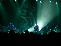 The band has consistently used as their logo a skeleton holding a cigarette and a martini glass. It is frequently featured in live performances as well as album covers.[56] The logo came from an invitation to a New Year's Eve party that a friend of Ness’ had designed. Said Ness in an April 2011 interview with Rolling Stone: "At the time, I saw that, and it just felt like, ‘That's it right there. It's life and death, it's celebration.’ It just felt powerful."[57]