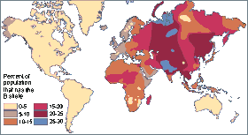 In 1964, the biologists Paul Ehrlich and Holm pointed out cases where two or more clines are distributed discordantly – for example, melanin is distributed in a decreasing pattern from the equator north and south; frequencies for the haplotype for beta-S hemoglobin, on the other hand, radiate out of specific geographical points in Africa.[89] As the anthropologists Leonard Lieberman and Fatimah Linda Jackson observed, "Discordant patterns of heterogeneity falsify any description of a population as if it were genotypically or even phenotypically homogeneous".[83]