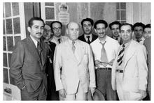 The promulgation, in 1948, of the Law 8.987 "Defense of Democracy Law" that banned the communists, was again a factor of division among the socialists.[11] Bernardo Ibáñez, Oscar Schnake, Juan Bautista Rosseti and other anticommunist socialists supported it with enthusiasm; while the board of directors of the party directed by Raúl Ampuero and Eugenio González rejected it. The anticommunist group of Ibáñez was expelled from the PS and they constituted the Socialist Party of the Workers; nevertheless the Conservative of the electoral Roll assigned to the group of Ibáñez the name Socialist Party of Chile, forcing the group of Ampuero to adopt the name Socialist Popular Party.[12]