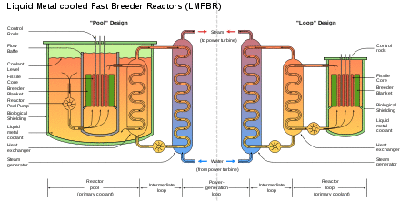 In the loop type, the heat exchangers are external to the reactor tank. The French Rapsodie, British Prototype Fast Reactor and others used this approach.