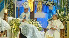 On May 18, 1700, the colonial government of the Philippines established Sogod as a regular visita [satellite barrio with chapel]. With this elevation, a concrete church finally stood in the settlement in the year 1718.[15] The construction was made possible through the mandate of the Most Reverend Sebastian Foronda, OSA, bishopric of Cebu.[12] Eventually, more subdistricts in the vicinity of Sogod came into existence such as the barrio of Maak, which was established on February 3, 1730 while the barrio of Buntuk was erected on April 10, 1750.[9][11]