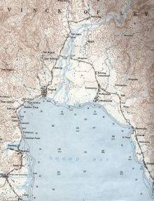 "The town of Sogod is located on the shore of the great inlet of Malitbog to the south of the island of Leyte, in the western coast of the said inlet and adjoins Cabalian on the east with the island of Panaon further south, some three hours away. The town of Malitbog in the south-west is two-to-three-hour crossing through the said inlet… The old [site] of Sogod [barangay Zone III]… was situated at the end of a great inlet where the ruins of the walls of coral stone and lime mortar masonry of the iglesia [church] during the Jesuit period, are still preserved. Presently, the poblacion of this town [barangays Jubas and Talisay in Libagon town] is transferred some three (3) leagues from that one in the western coast of the same inlet."[15]