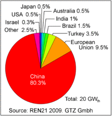 - ^ Werner Weiss & Franz Mauthner (May 2011). "Solar Heat Worldwide" (PDF). Archived from the original (PDF) on August 12, 2011. Retrieved 2012-06-23.