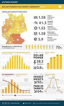 - ^ a b c "GERMANY: SOLAR POWER FACTSHEET 2016". Strom-Report.