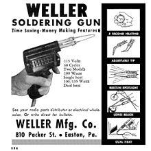 Pistol-grip electrically-heated soldering tools had been used since the 1920s. In 1941 Carl E. Weller invented and later obtained U.S. Patent 2,405,866[1] for a transformer-based soldering tool which heated and cooled rapidly,[2] essentially as described in this article. Weller formed a company to manufacture and sell his invention commercially in 1946. The Weller company was bought in 1970 and merged into the Cooper Industries group,[3] retaining the Weller brand for soldering equipment.