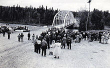 In 1947, after World War II, the United States government withdrew a number of townships along Cook Inlet and the lower Kenai River from the Kenai National Moose Range, opening up the area to settlement under the Homestead Act. Veterans of the United States armed services were given a 90-day preference over non-veterans in selecting land and filing for property. Also in that year, the Sterling Highway right-of-way was cleared of trees from Cooper Landing to Kenai. The location of present-day Soldotna was selected as the site for the highway's bridge crossing the Kenai River.