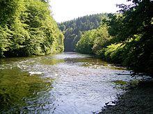 Solingen lies southwest of Wuppertal in the Bergisches Land. The city has an area of 89.45 square kilometres (34.54 sq mi), of which roughly 50% is used for agriculture, horticulture, or forestry. The city's border is 62 kilometres (39 mi) long, and the city's dimensions are 15.6 kilometres (9.7 mi) east to west and 11.7 kilometres (7.3 mi) north to south. The Wupper river, a right tributary of the Rhine, flows through the city for 26 kilometres (16 mi). The city's highest point at 276 metres (906 ft) is in the northern borough of Gräfrath at the Light Tower, previously the water tower, and the lowest point at 53 metres (174 ft) is in the southwest.