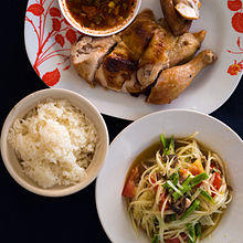 Green papaya salad is an innovation of the Lao people.[25][26] Variations of the dish are found throughout Thailand, Cambodia, Vietnam and as well as in the West, where it is more commonly known by its Thai name.[27][28]