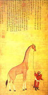 Trading relations were established with Malacca in the 15th century,[84] with cloth, ambergris and porcelain being the main commodities of the trade.[85] Giraffes, zebras and incense were exported to the Ming Empire of China, which established Somali merchants as leaders in the commerce between East Asia and the Horn.[86] Hindu merchants from Surat and Southeast African merchants from Pate, seeking to bypass both the Portuguese India blockade ( and later the Omani interference), used the Somali ports of Merca and Barawa (which were out of the two powers' direct jurisdiction) to conduct their trade in safety and without interference.[87]