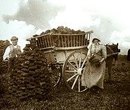 The extraction of peat from the Moors is known to have taken place during Roman times, and has been carried out since the Levels were first drained.[129] The introduction of plastic packaging in the 1950s allowed the peat to be packed without rotting, which led to the industrialisation of peat extraction during the 1960s as a major market in horticultural peat was developed. The resulting reduction in water levels put local ecosystems at risk; peat wastage in pasture fields was occurring at rates of 1–3 feet (0.3–0.8 m) over 100 years.[130] Peat extraction continues today, although much reduced.[7][131]