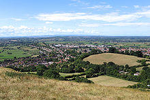 The area continued to be inhabited during the Bronze Age, when the population supported itself largely by hunting and fishing in the surrounding marshes, living on artificial islands connected by wooden causeways on wooden piles. There have been many finds of metalwork during peat cutting, which may have been devotional offerings. Brent Knoll has been settled by people since at least the Bronze Age. It is the site of an Iron Age hill fort known as Brent Knoll Camp, with multiple ramparts (multivallate) following the contours of the hill.[84] Several settlements and hill forts were built on the natural "islands" of slightly raised land, including Brent Knoll, Glastonbury, and the low range of the Polden Hills. According to legend Ider son of Nuth, who was one of King Arthur's knights, went to the Mount of Frogs on a quest to slay three giants who lived there.[85][86][87] The fort has been claimed as the site of the Battle of Mons Badonicus.[88]