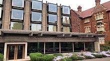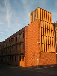 Vaughan is the larger of the two, with eleven rows to its concrete frame compared to the eight of Margery Fry.[63] It is a Grade II-listed building and contains around 60 undergraduate rooms, which are smaller than those of Margery Fry and house exclusively first-year students, along with the junior deans.[64] Vaughan was refurbished in 2013, with new bathroom facilities, including, for the first time, sinks. Beneath the two buildings, a tunnel provides access to Somerville from Little Clarendon Street.[57]