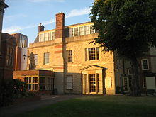 Originally known as West, due to its location within the college, the idea of building a second self-contained hall was inspired by Newnham College, Cambridge. The building was designed by Harry Wilkinson Moore and built in two stages. The 1885–1887 phase saw the construction of rooms for 18 students with their own dining-room, sitting rooms and vice-principal. This was a deliberate policy aimed at replicating the family environment that the women students had left.[45] This arrangement had the effect of turning House and West into rivals.[47] The second building stage (1888–1894) created two sets of tutors' rooms, a further 19 rooms and the West Lodge (now Park Lodge).[44][48] In 2004 it was renamed Park in honour of Daphne Park, the principal from 1980 to 1989.[47]