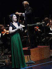 In 2010, she opened the Canadian Opera Company's season in the title role of Verdi's Aida.[17] She has had success in recent years as Leonora, notably in David McVicar's production of Il trovatore at the Metropolitan Opera.[18] In 2011, she hosted the Metropolitan Opera Live in HD, which was broadcast in movie theaters around the world.[19] In addition to her specialty in Verdi heroines, she has also sung the title roles in Suor Angelica, Tosca, Susannah, Rusalka, and Norma, among others.[20][21]