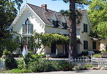 Vallejo's home was built beside the spring and its pool in 1851-1852. The two-story, wood-frame house was prefabricated, designed and built on the east coast of United States. It was shipped around Cape Horn on a sailing ship and then assembled at its present site. The design was Victorian Carpenter Gothic highlighted by a large Gothic window in the master bedroom, twin porches, dormer windows, and elaborate carved wooden trim along the eaves. Bricks were placed inside the walls of the house in order to keep it warm in winter and cool in summer. Each room had its own white marble fireplace. Crystal chandeliers, lace curtains, and many other furnishings including the handsome, rosewood, concert-grand piano, were imported from Europe.[5]