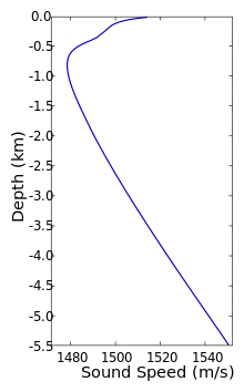 (Note: The Sound Speed vs. Depth graph does not correlate directly to the MacKenzie formula. This is due to the fact that the temperature and salinity varies at different depths. When T and S are held constant, the formula itself is always increasing with depth.)