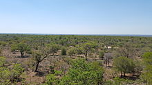 The coastal belt, below the Great Escarpment, moving clockwise from the northeast, consists of the Limpopo Lowveld, which merges into the Mpumalanga Lowveld, below the Mpumalanga Drakensberg (the eastern portion of the Great Escarpment).[89] This is hotter, drier and less intensely cultivated than the Highveld above the escarpment.[87] The Kruger National Park, located in the provinces of Limpopo and Mpumalanga in northeastern South Africa, occupies a large portion of the Lowveld covering 19,633 square kilometres (7,580 sq mi.)[90] South of the Lowveld the annual rainfall increases as one enters KwaZulu-Natal Province, which, especially near the coast, is subtropically hot and humid. The KwaZulu-Natal–Lesotho international border is formed by the highest portion of the Great Escarpment, or Drakensberg, which reaches an altitude of over 3,000 m (9,800 ft).[91] The climate at the foot of this part of the Drakensberg is temperate.