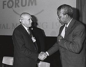 The Mahlabatini Declaration of Faith, signed by Mangosuthu Buthelezi and Harry Schwarz in 1974, enshrined the principles of peaceful transition of power and equality for all, the first of such agreements by black and white political leaders in South Africa. Ultimately, FW de Klerk opened bilateral discussions with Nelson Mandela in 1993 for a transition of policies and government.