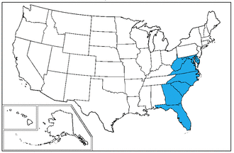 This division includes eight states and one district; Delaware, Florida, Georgia, Maryland, North Carolina, South Carolina, Virginia, West Virginia and the District of Columbia.[1] This division is also a recognized geographical division used by the United States Geological Survey.[2]:2 All entities within the region apart from the District of Columbia and West Virginia border the North Atlantic Ocean.