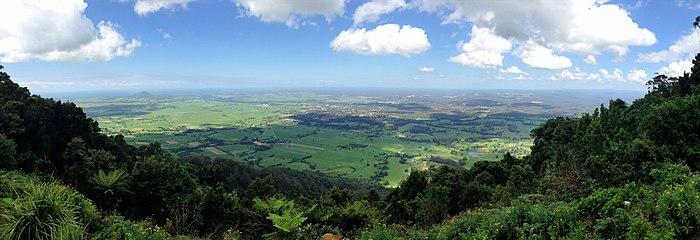 The region has a mild, warm temperate climate.[4] Maximum temperatures range from around 30 °C (86 °F) in summer to approximately 17 °C (62 °F) in winter. However, rainfall tends toward erratic as falls can occur in heavy, but often irregular, storms. These storms may occur at any time of year, but are most frequent in late autumn and early winter. When a strong anticyclone is located to the south of these low-pressure systems, rainfalls of up to 350mm (14 inches) in a day and 500mm (20 inches) in two days may occur. For example, in May 1925 the region received an averages of as much as 860 millimetres (33 inches) of rain, with some places receiving as much as 1,270mm (50 inches) for the month. However, in dry years the region can receive as little as 400mm (16 inches) for an entire year. Furthermore, Bega received 380mm (15 inches) in May 1944 and over 400mm (16 inches) in two days during April 1945 - but only around 200mm (8 inches) in the ten months in between.