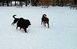 Quarry has a splash/sprinkle park, Victory sand volleyball courts, and Bexley a swimming pool. Quarry, Victory, and Bexley have playground equipment, and all four parks permit picnicking (although grilling facilities only remain at Bexley's pavilion and at Quarry North).[33] Quarry and Bexley both have baseball diamonds utilized by the city's public baseball and softball leagues.[34] Quarry Park North features a fenced off dog park, where canines can play unleashed,[35] with a separate section for smaller dogs.[36]