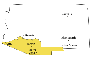 Furthermore, the populated areas of Southern Arizona include the major U.S. Army post of Fort Huachuca and Davis–Monthan Air Force Base of the U.S. Air Force.