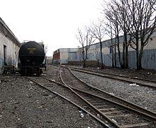 At the beginning, the South Side was looking at the New York and Flushing Railroad for access to Long Island City, but the LIRR bought it in 1867 and forced the South Side to build to Williamsburg.[3] However, the Flushing and North Side Railroad soon drove most traffic away from the New York and Flushing, leading to the portion east of Winfield being sold to the Flushing and North Side in 1869, and the rest lying unused.[7] The Hunters Point and South Side Railroad was incorporated on January 5, 1870 to connect Fresh Pond on the South Side with the East River,[10] and opened in 1872 to a point on the New York and Flushing.[11] The South Side thus gained a new freight terminal at Long Island City by rebuilding part of the old New York and Flushing, but passenger service continued to operate to Williamsburg.[7]