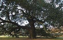 Quercus virginiana, also known as the southern live oak, is an evergreen oak tree endemic to the Southeastern United States.[5] Though many other species are loosely called live oak, the southern live oak is particularly iconic of the Old South. Many very large and old specimens of live oak can be found today in the Deep South region of the United States.[6]