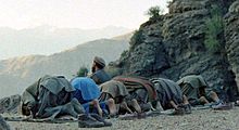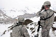 The war now developed into a new pattern: the Soviets occupied the cities and main axis of communication, while the mujahideen, which the Soviet Army soldiers called 'Dushman,' meaning 'enemy',[157] divided into small groups and waged a guerrilla war. Almost 80 percent of the country was outside government control.[70] Soviet troops were deployed in strategic areas in the northeast, especially along the road from Termez to Kabul. In the west, a strong Soviet presence was maintained to counter Iranian influence. Incidentally, special Soviet units would have also performed secret attacks on Iranian territory to destroy suspected mujahideen bases, and their helicopters then got engaged in shootings with Iranian jets.[158] Conversely, some regions such as Nuristan, in the northeast, and Hazarajat, in the central mountains of Afghanistan, were virtually untouched by the fighting, and lived in almost complete independence.