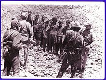 Large parts of the country went into open rebellion. The Parcham Government claimed that 11,000 were executed during the Amin/Taraki period in response to the revolts.[128] The revolt began in October among the Nuristani tribes of the Kunar Valley in the northeastern part of the country near the border with Pakistan, and rapidly spread among the other ethnic groups. By the spring of 1979, 24 of the 28 provinces had suffered outbreaks of violence.[129][130] The rebellion began to take hold in the cities: in March 1979 in Herat, rebels led by Ismail Khan revolted. Between 3,000 and 5,000 people were killed and wounded during the Herat revolt. Some 100 Soviet citizens and their families were killed.[131][132]